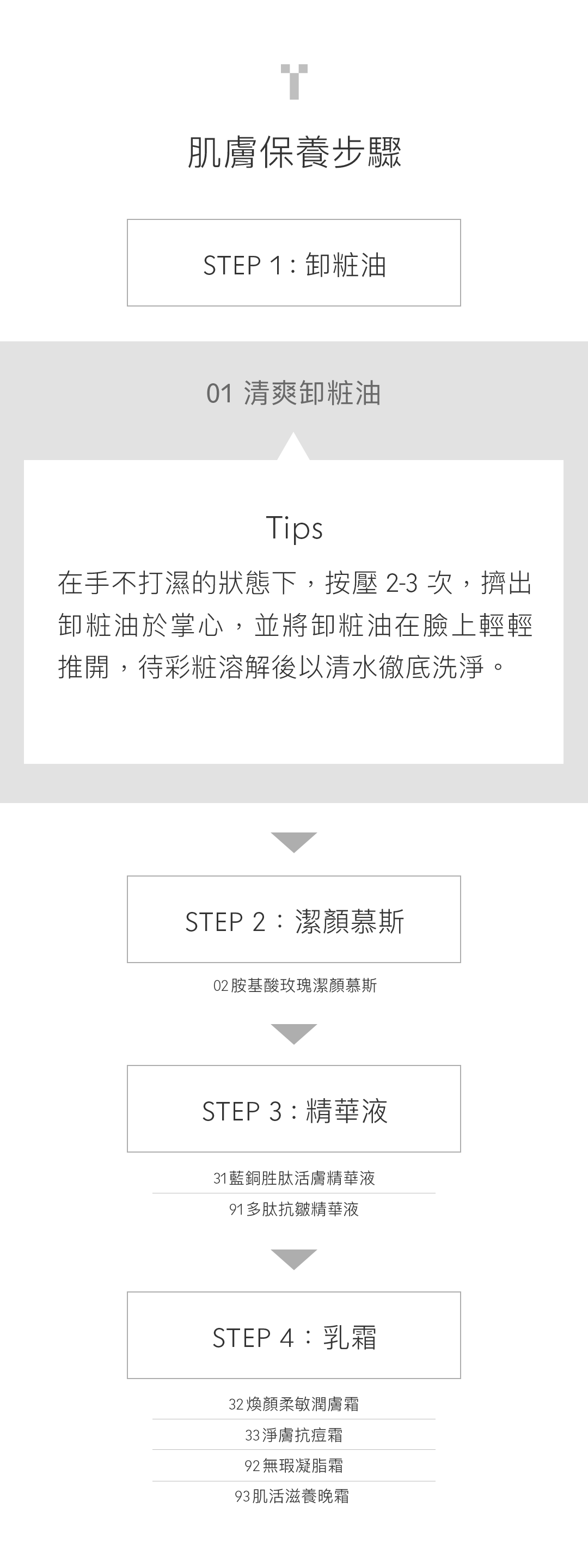 以來自⻄班牙經冷壓而成的化粧品級橄欖油及源自日本的透薄、清爽油脂作為基礎,搭配安全性高、卸粧力佳的乳化系統,使附著於肌膚表面的彩粧、隔離霜、防曬製品及BB / CC / DD / EE Cream等都能被徹底的移除。